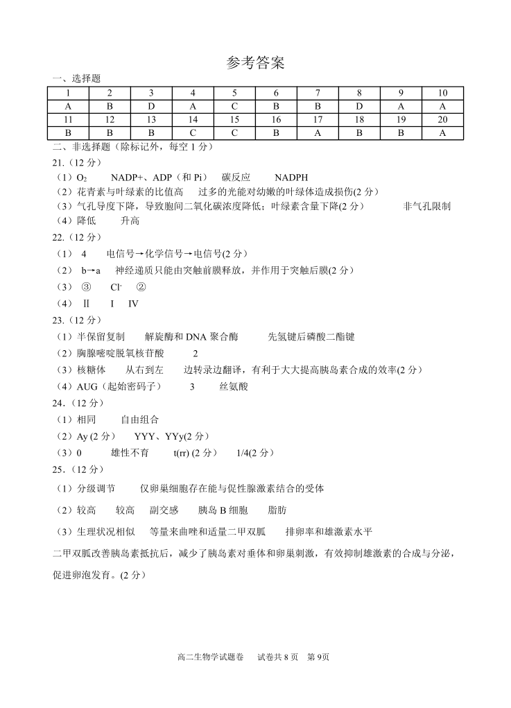 2025学年第一学期高二年级10月六校联考 生物答案.pdf
