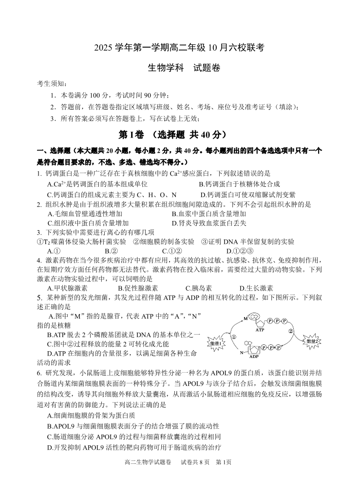2025学年第一学期高二年级10月六校联考 生物.pdf