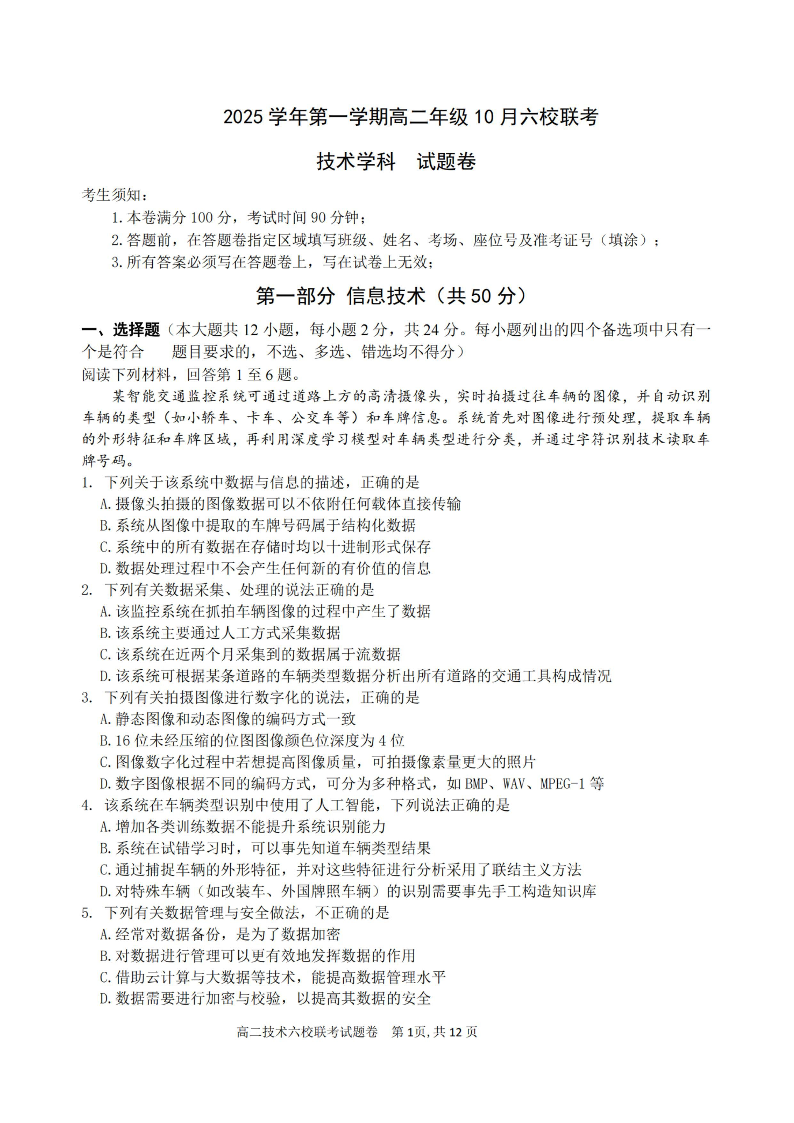 2025学年第一学期高二年级10月六校联考 技术.pdf