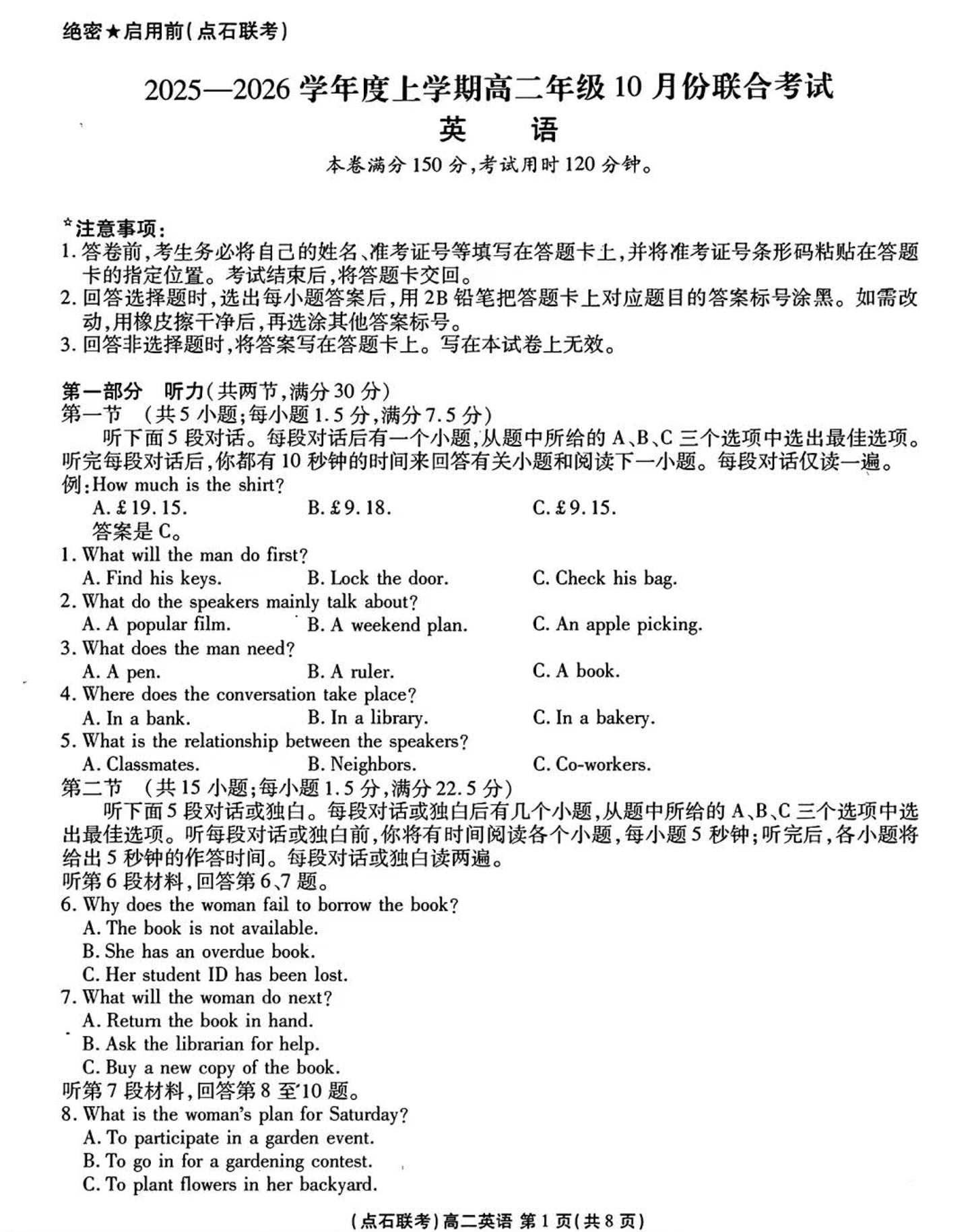 辽宁省点石联考2025-2026学年上学期高二年级10月份联合考试 英语.pdf