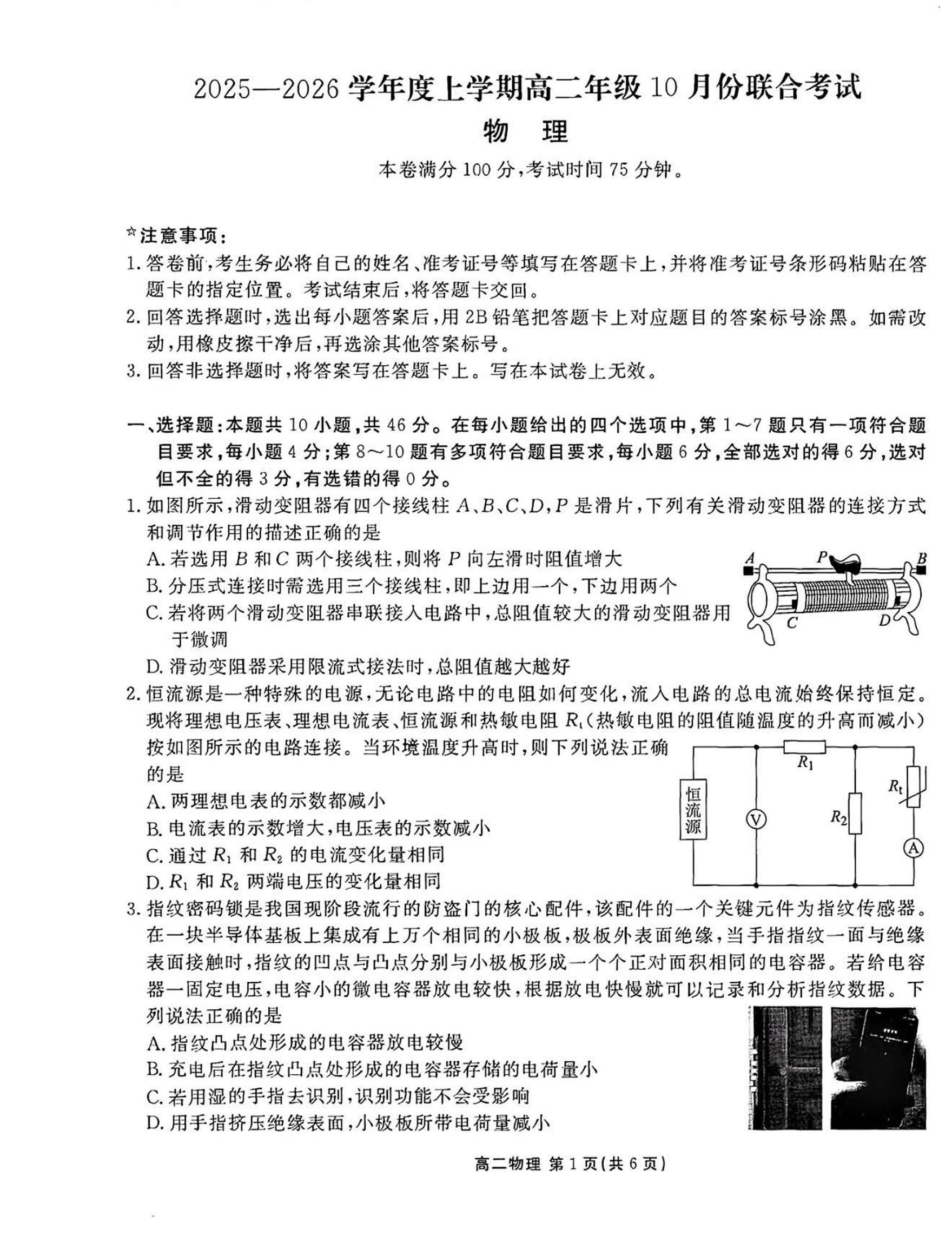 辽宁省点石联考2025-2026学年上学期高二年级10月份联合考试 物理.pdf