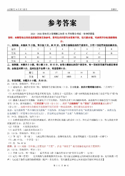 辽宁省点石联考2025-2026学年上学期高二年级10月份联合考试 生物答案.pdf