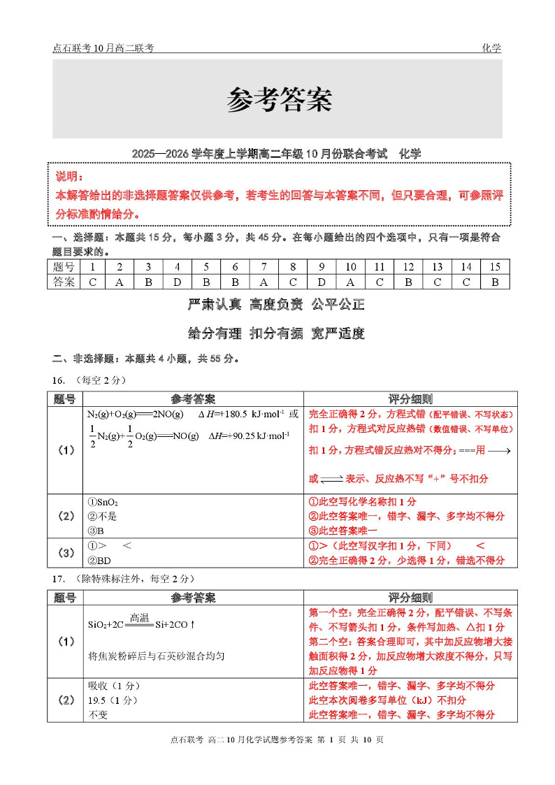 辽宁省点石联考2025-2026学年上学期高二年级10月份联合考试 化学答案.pdf