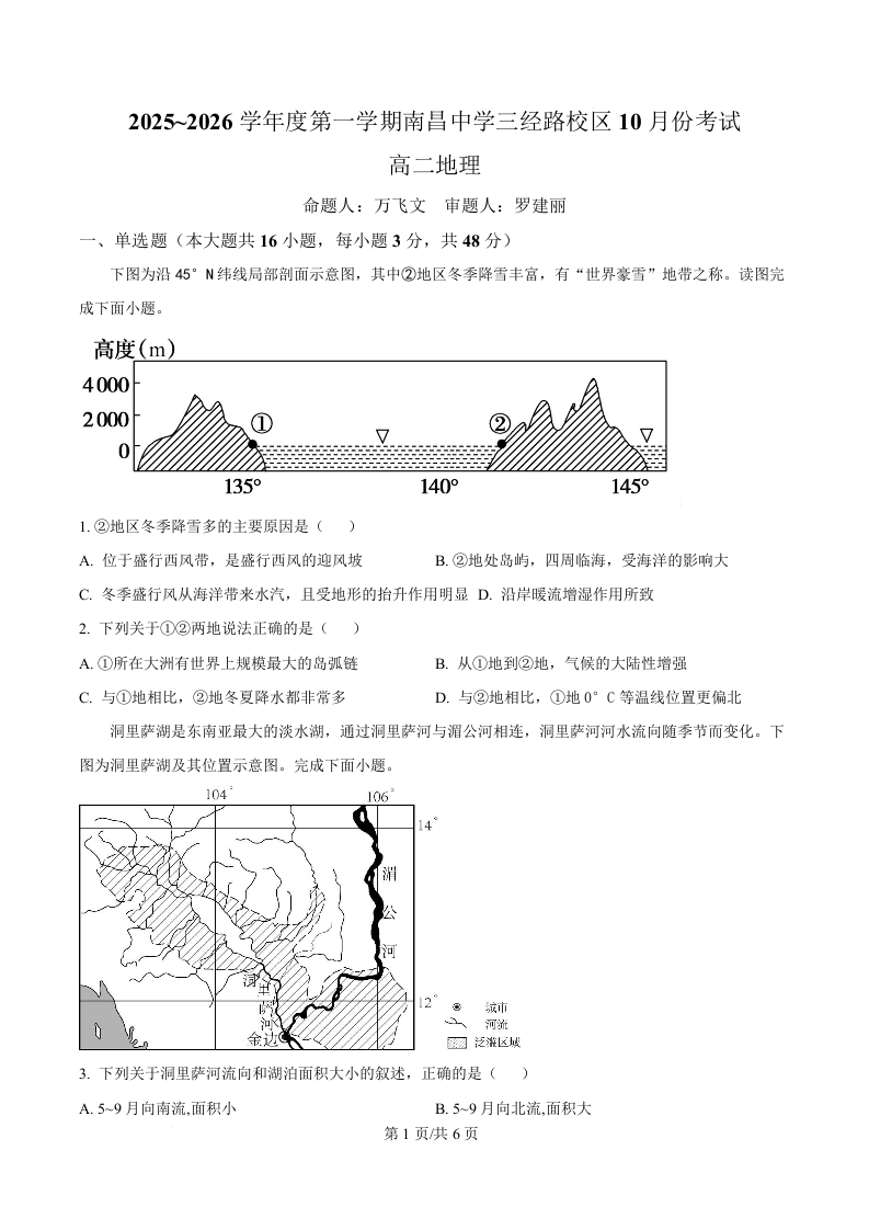 江西省南昌中学(三经路校区)2025-2026学年高二上学期10月月考 地理.docx