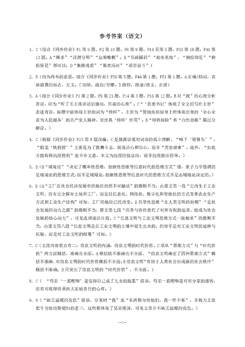 湖南省长沙市雅礼中学2025-2026学年高二上学期第一次(10月)质量检测 语文答案.pdf