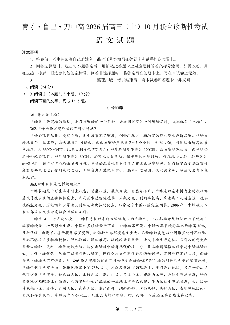 育才·鲁巴·万中高2026届高三(上)10月联合诊断性考试 语文.pdf