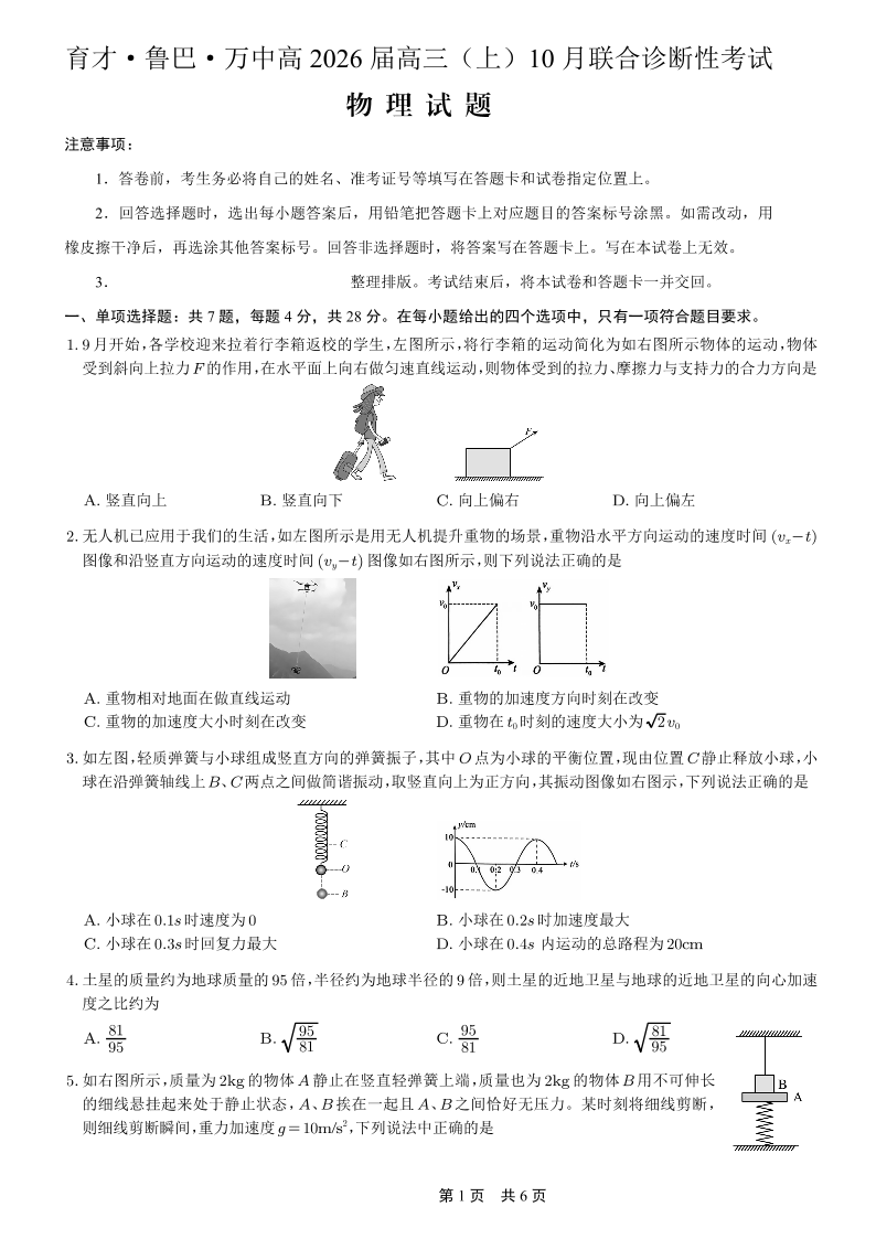 育才·鲁巴·万中高2026届高三(上)10月联合诊断性考试 物理.pdf