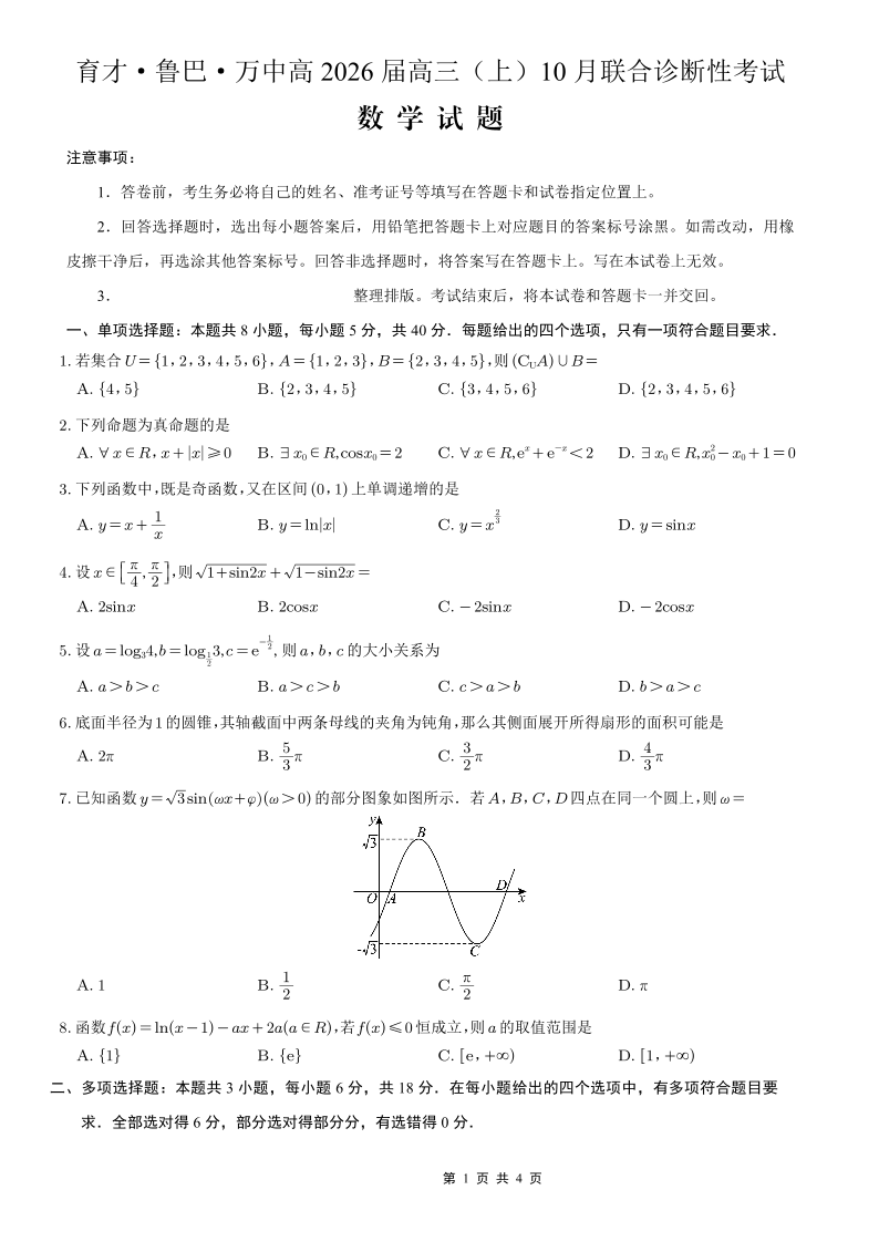 育才·鲁巴·万中高2026届高三(上)10月联合诊断性考试 数学.pdf