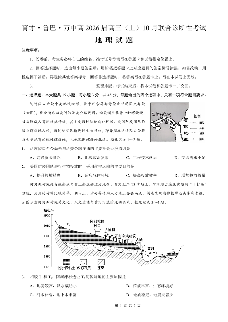 育才·鲁巴·万中高2026届高三(上)10月联合诊断性考试 地理.pdf