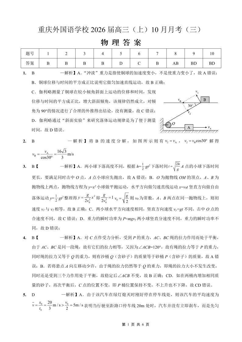 重庆外国语学校高2026届高三(上)10月月考(三)物理答案.pdf