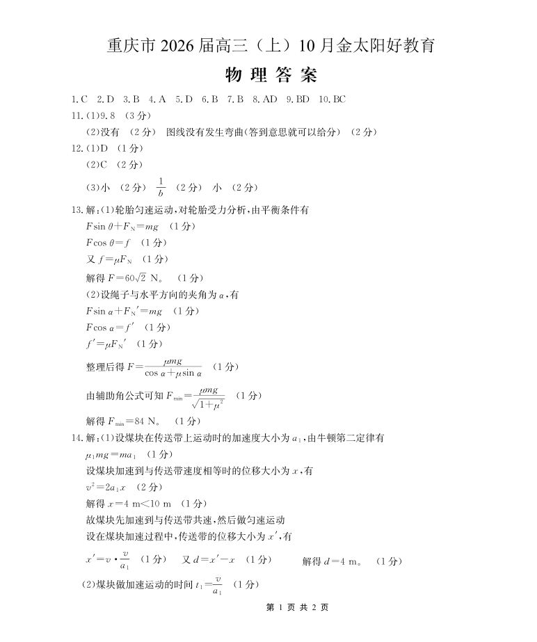 重庆市好教育联盟2026届高三(上)10月联考 物理答案.pdf