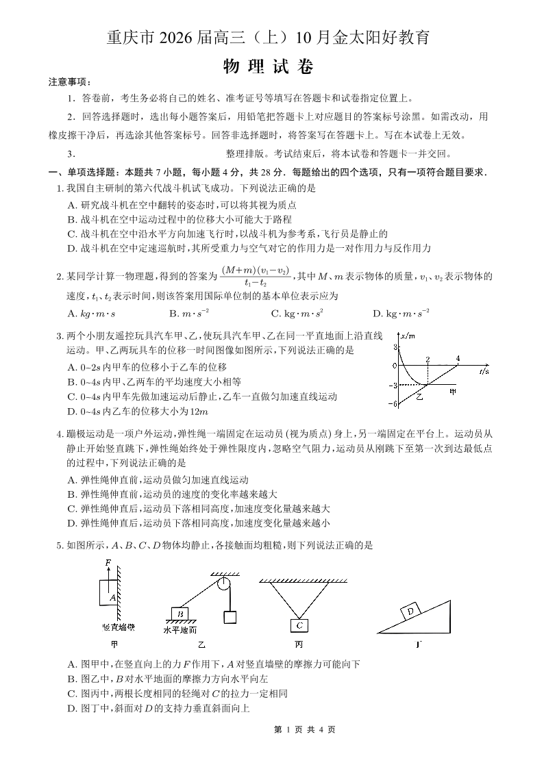 重庆市好教育联盟2026届高三(上)10月联考 物理.pdf
