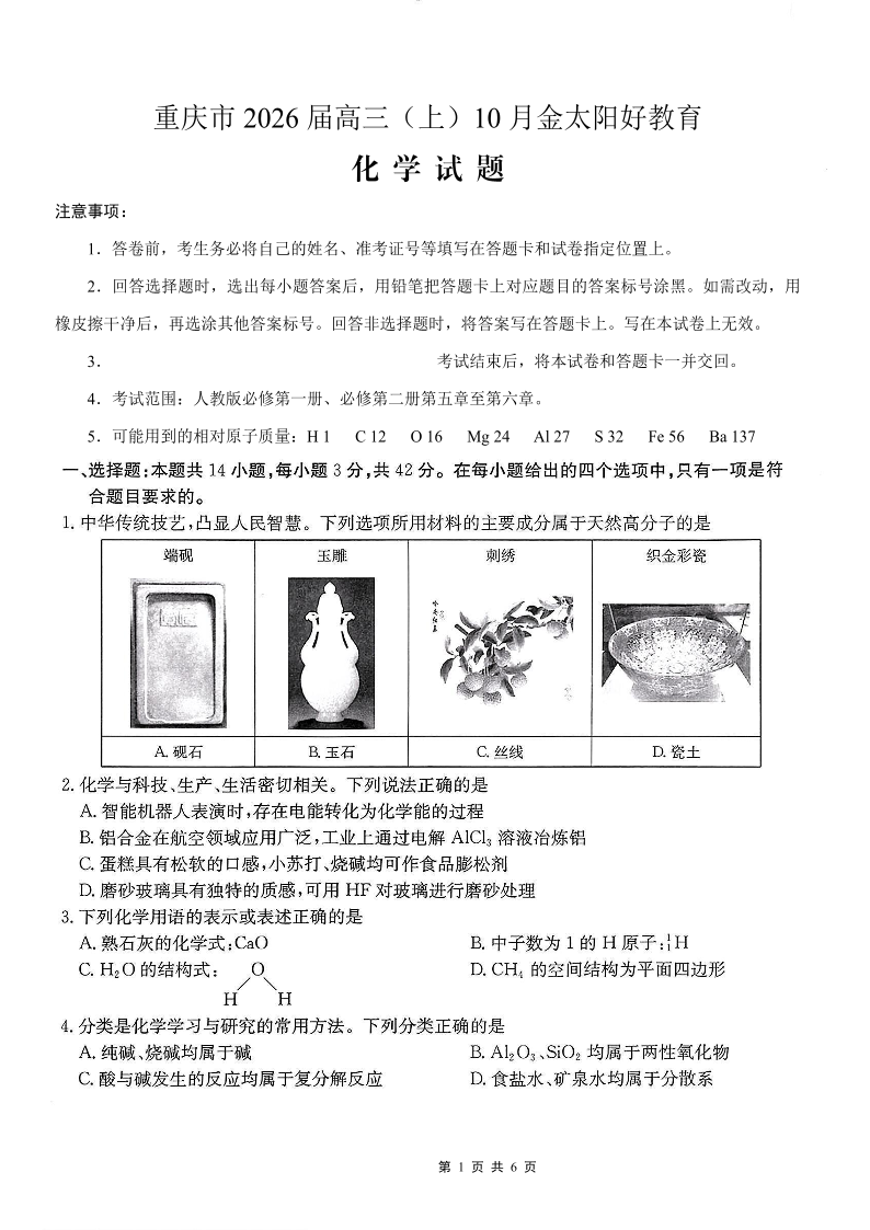 重庆市好教育联盟2026届高三(上)10月联考 化学.pdf