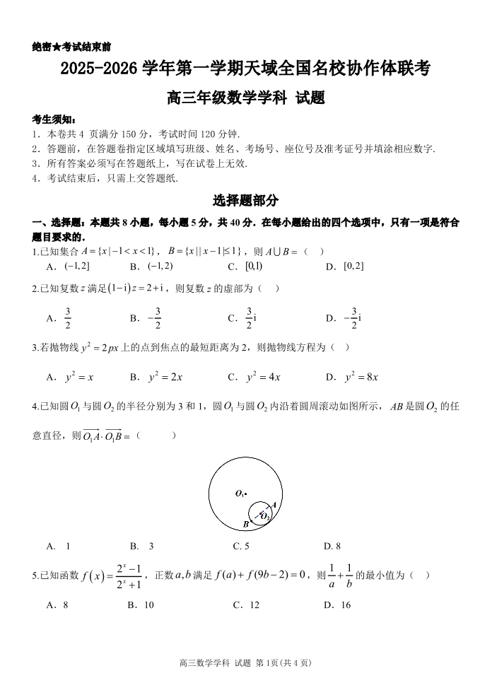 2025-2026学年第一学期天域全国名校协作体联考 数学.pdf
