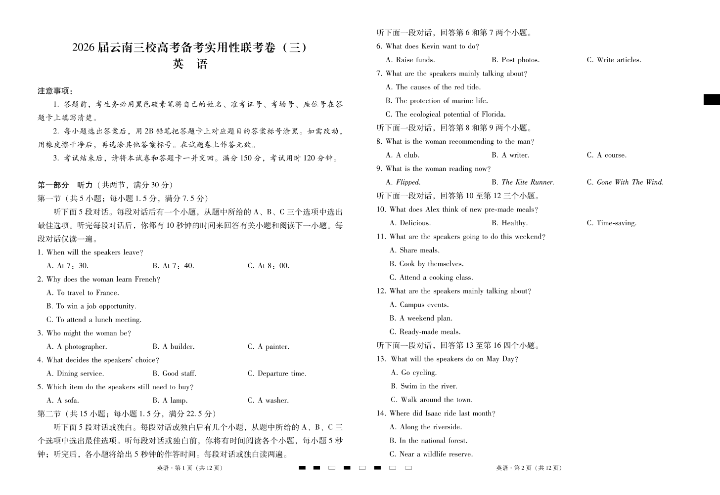 2026届云南三校高考备考实用性联考卷(三)英语.pdf