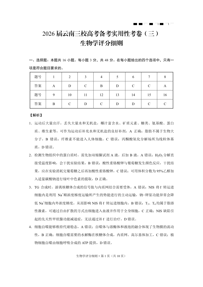 2026届云南三校高考备考实用性联考卷(三)生物答案.pdf