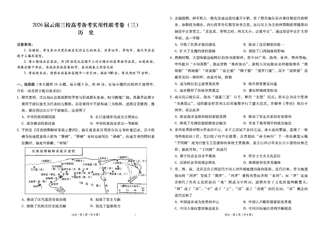 2026届云南三校高考备考实用性联考卷(三)历史.pdf