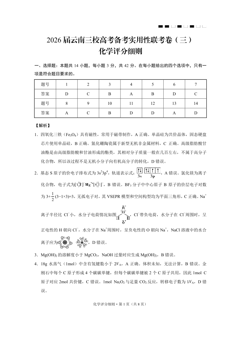 2026届云南三校高考备考实用性联考卷(三)化学答案.pdf
