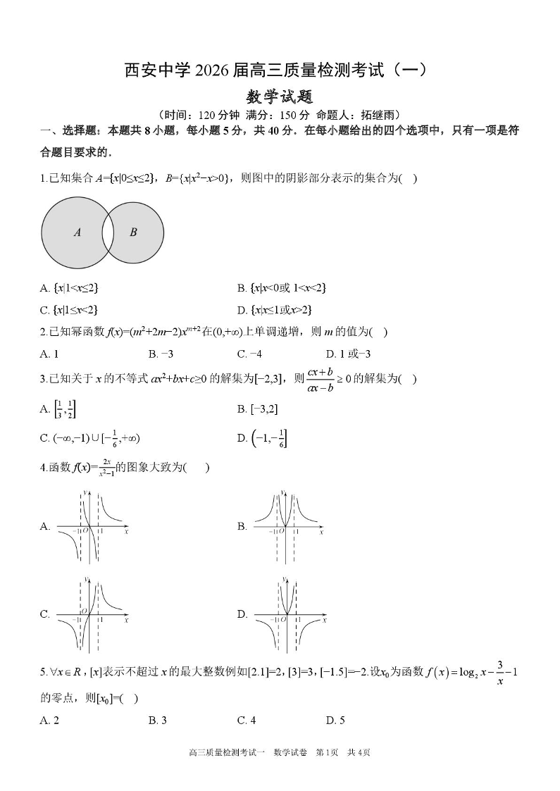 陕西省西安中学2026届高三上学期10月质量检测考试(一)数学.pdf