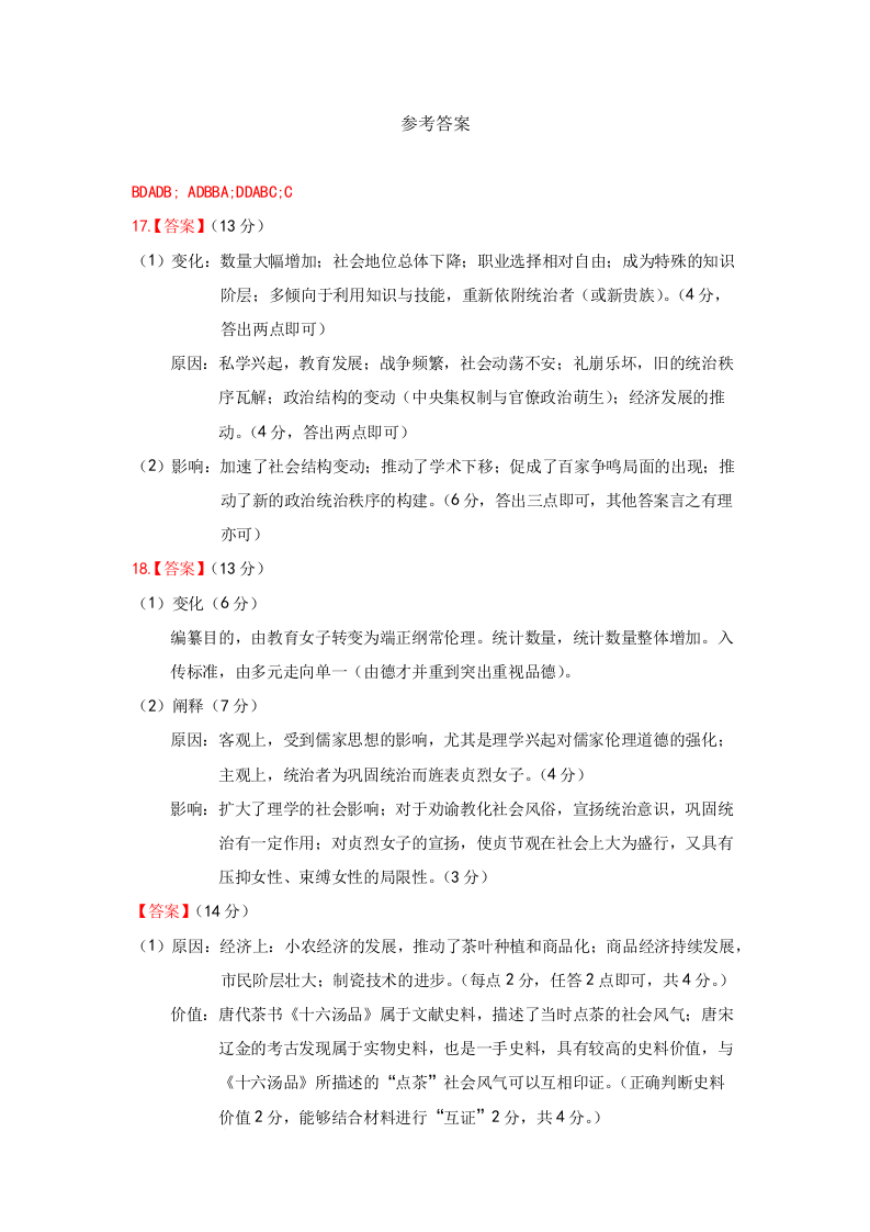 陕西省西安中学2026届高三上学期10月质量检测考试(一)历史答案.docx