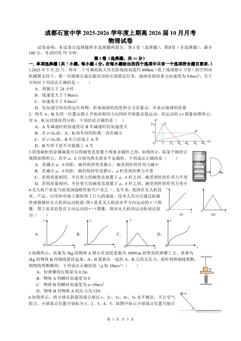 四川省成都市石室中学2025-2026学年高三上学期10月月考 物理.pdf