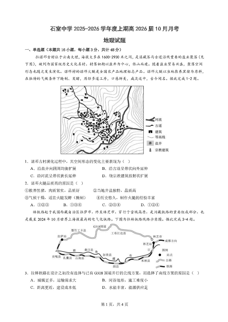 四川省成都市石室中学2025-2026学年高三上学期10月月考 地理.pdf