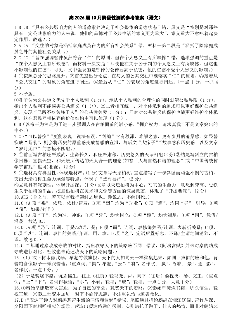 四川省成都市第七中学2025-2026学年高三上学期十月阶段性检测 语文答案.pdf
