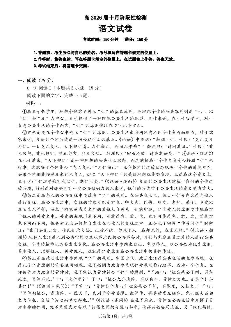 四川省成都市第七中学2025-2026学年高三上学期十月阶段性检测 语文.pdf