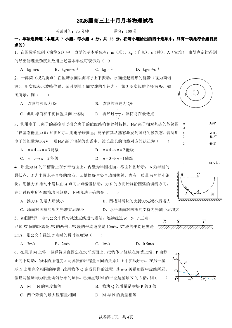 四川省成都市第七中学2025-2026学年高三上学期十月阶段性检测 物理.pdf