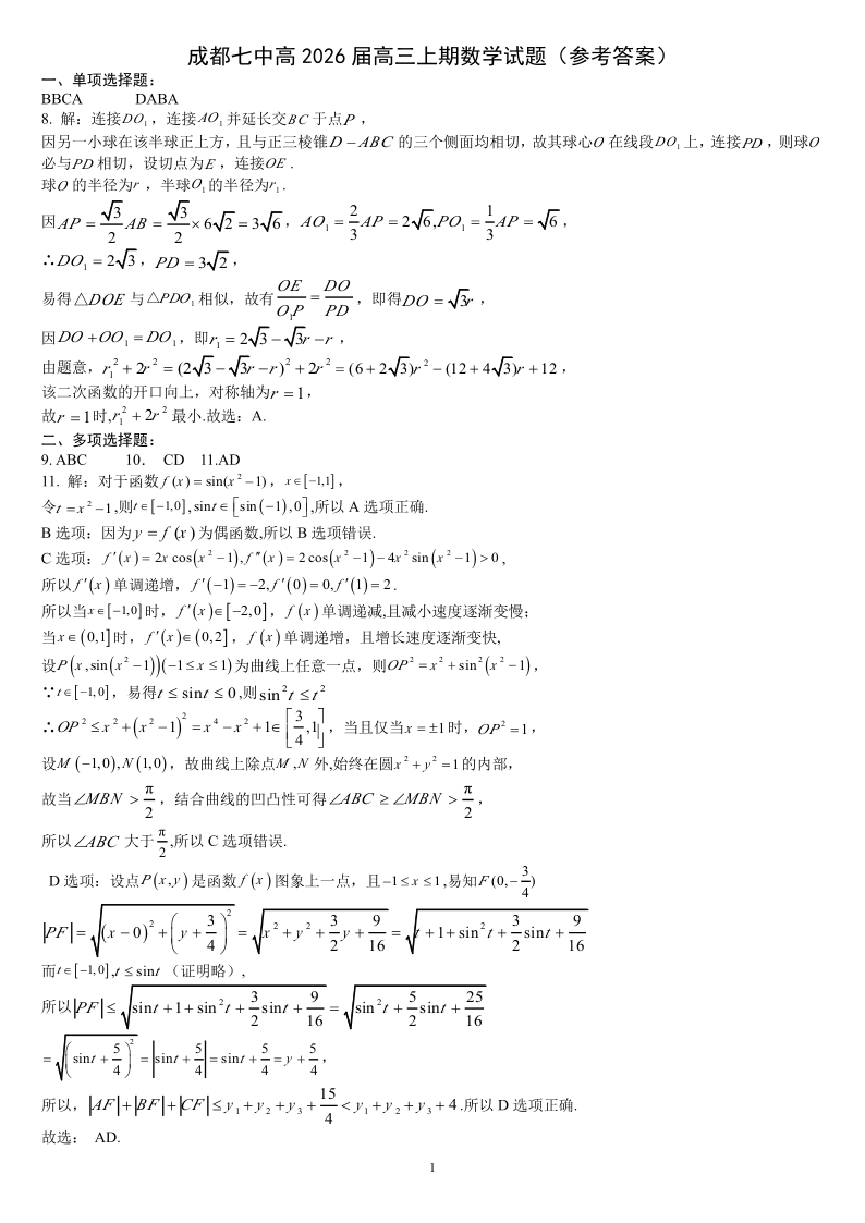 四川省成都市第七中学2025-2026学年高三上学期十月阶段性检测 数学答案.pdf
