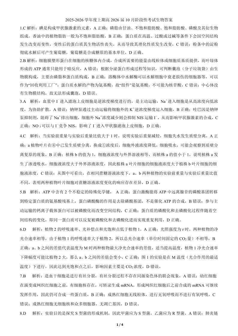 四川省成都市第七中学2025-2026学年高三上学期十月阶段性检测 生物答案.pdf