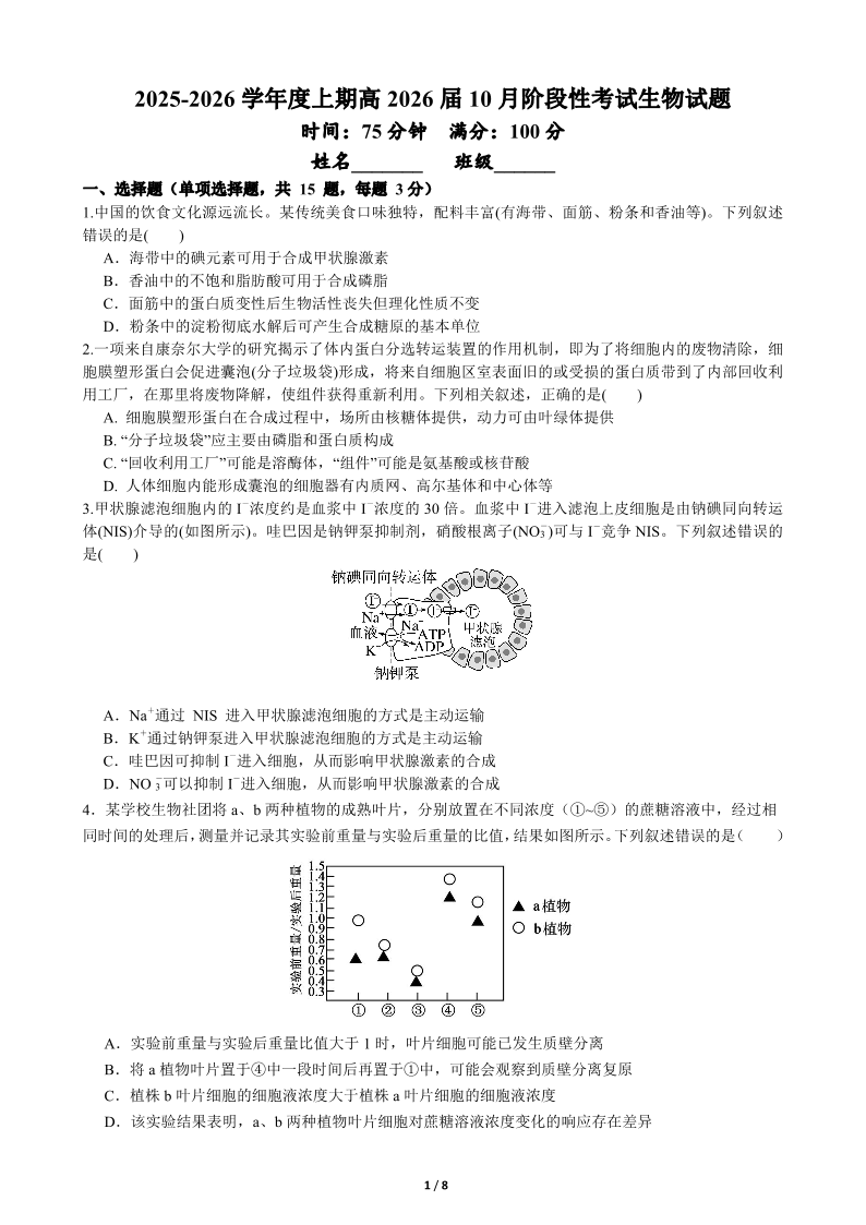 四川省成都市第七中学2025-2026学年高三上学期十月阶段性检测 生物.pdf