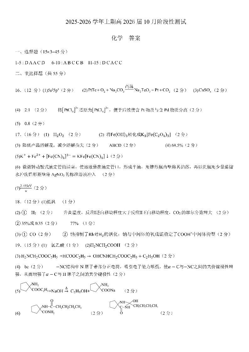 四川省成都市第七中学2025-2026学年高三上学期十月阶段性检测 化学答案.pdf