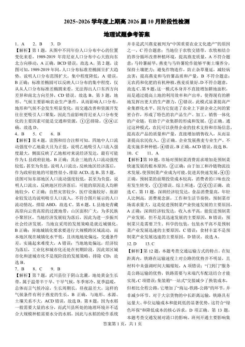 四川省成都市第七中学2025-2026学年高三上学期十月阶段性检测 地理答案.pdf