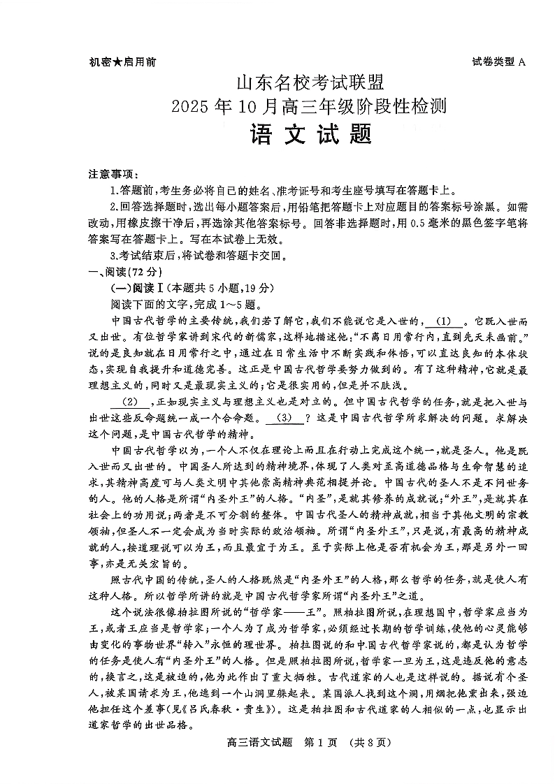 山东名校考试联盟2025年10月高三年级阶段性检测 语文.pdf