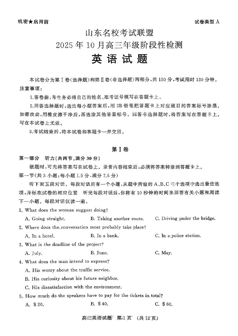山东名校考试联盟2025年10月高三年级阶段性检测 英语.pdf