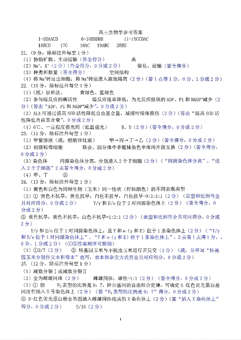 山东名校考试联盟2025年10月高三年级阶段性检测 生物答案.pdf