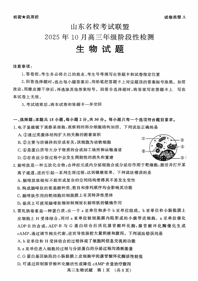 山东名校考试联盟2025年10月高三年级阶段性检测 生物.pdf