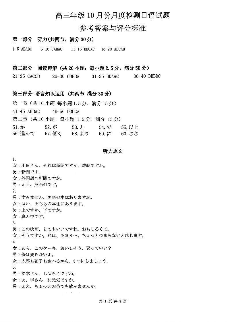 山东名校考试联盟2025年10月高三年级阶段性检测 日语答案.pdf
