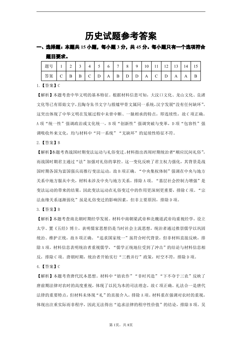 山东名校考试联盟2025年10月高三年级阶段性检测 历史答案.pdf