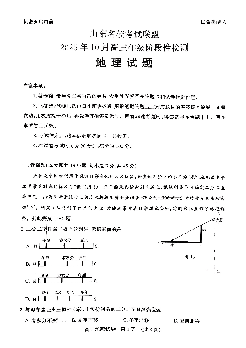 山东名校考试联盟2025年10月高三年级阶段性检测 地理.pdf