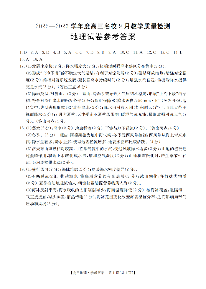内蒙古2026届高三名校9月教学质量检测试卷 地理答案.pdf