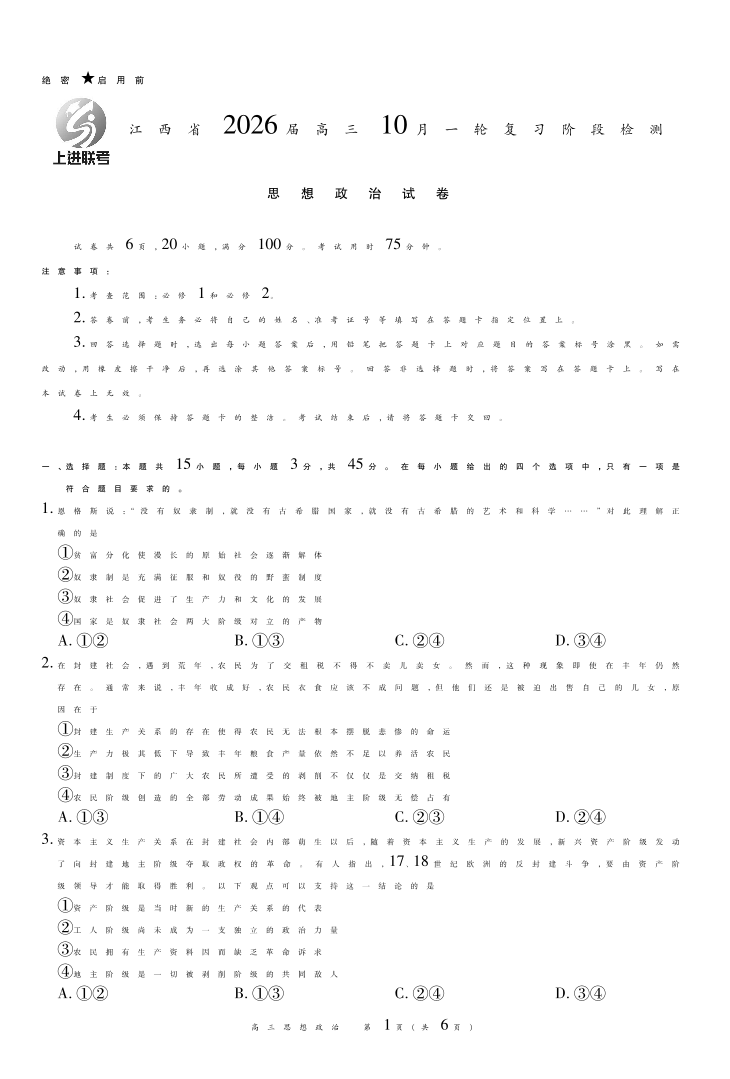 江西省2026届高三10月一轮复习阶段检测 政治.pdf