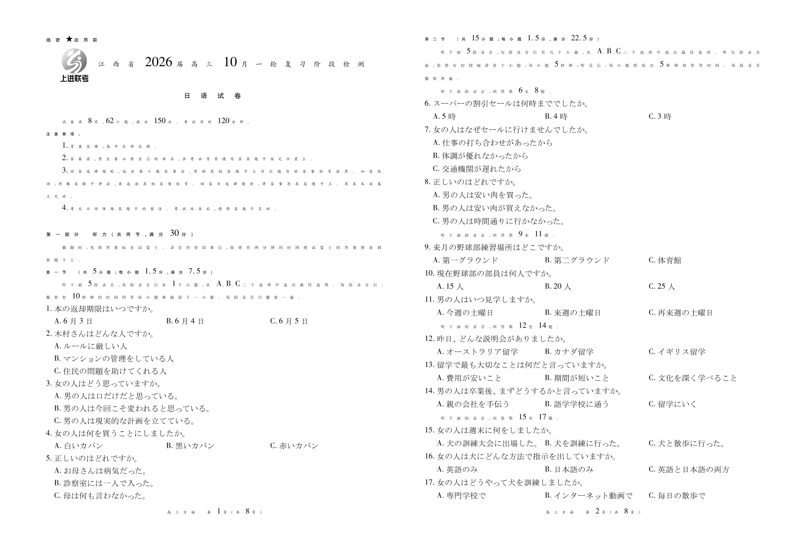 江西省2026届高三10月一轮复习阶段检测 日语.pdf