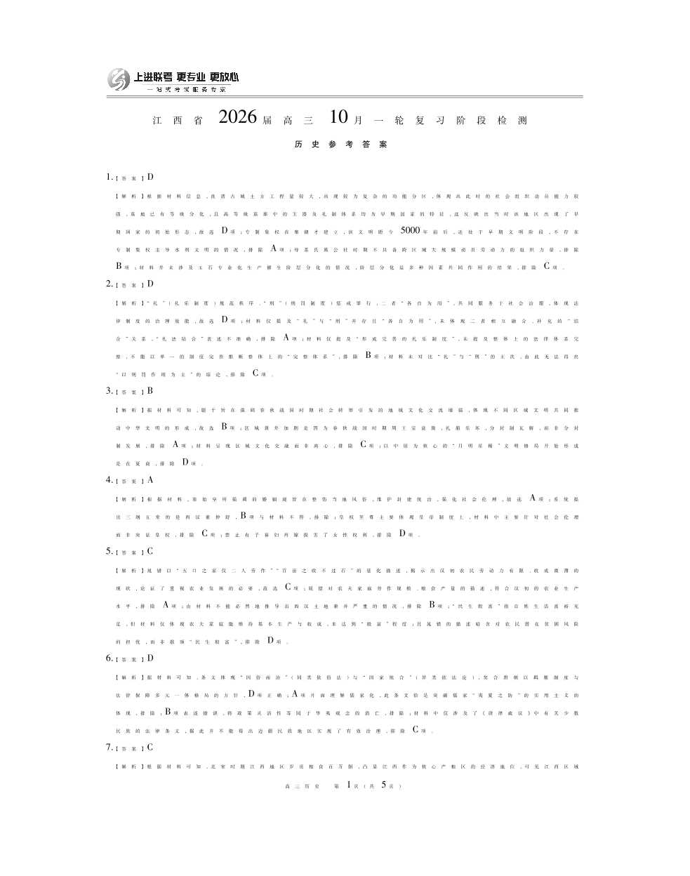 江西省2026届高三10月一轮复习阶段检测 历史答案.pdf