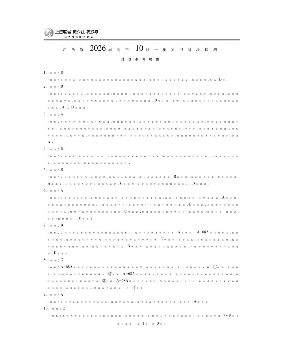 江西省2026届高三10月一轮复习阶段检测 地理答案.pdf
