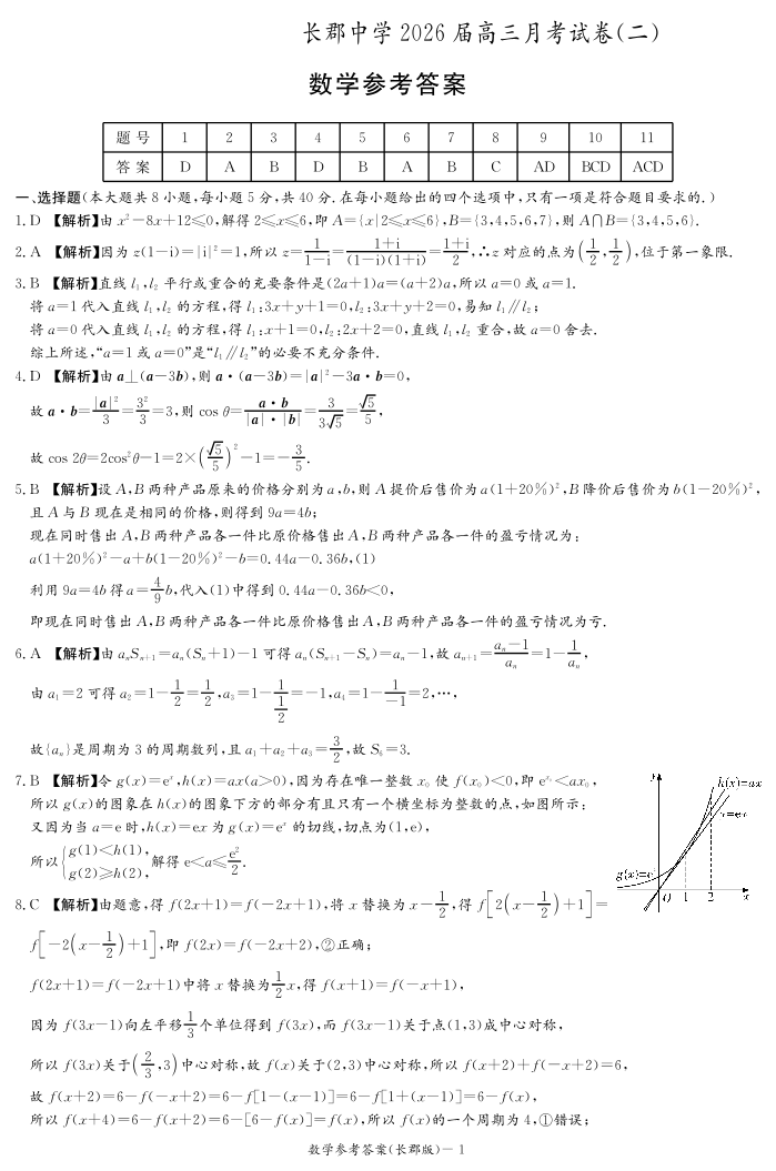长郡中学2026届高三月考试卷(二)数学答案.pdf