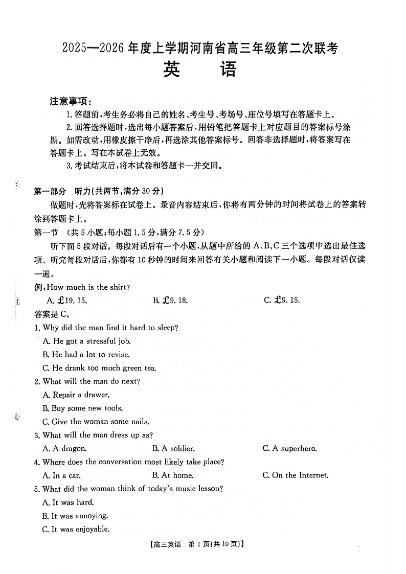 2025-2026年度上学期河南省高三年级第二次联考 英语.pdf