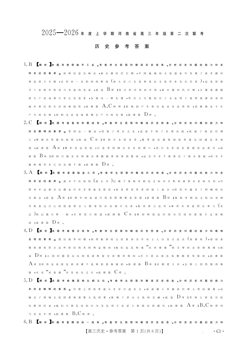 2025-2026年度上学期河南省高三年级第二次联考 历史答案.pdf