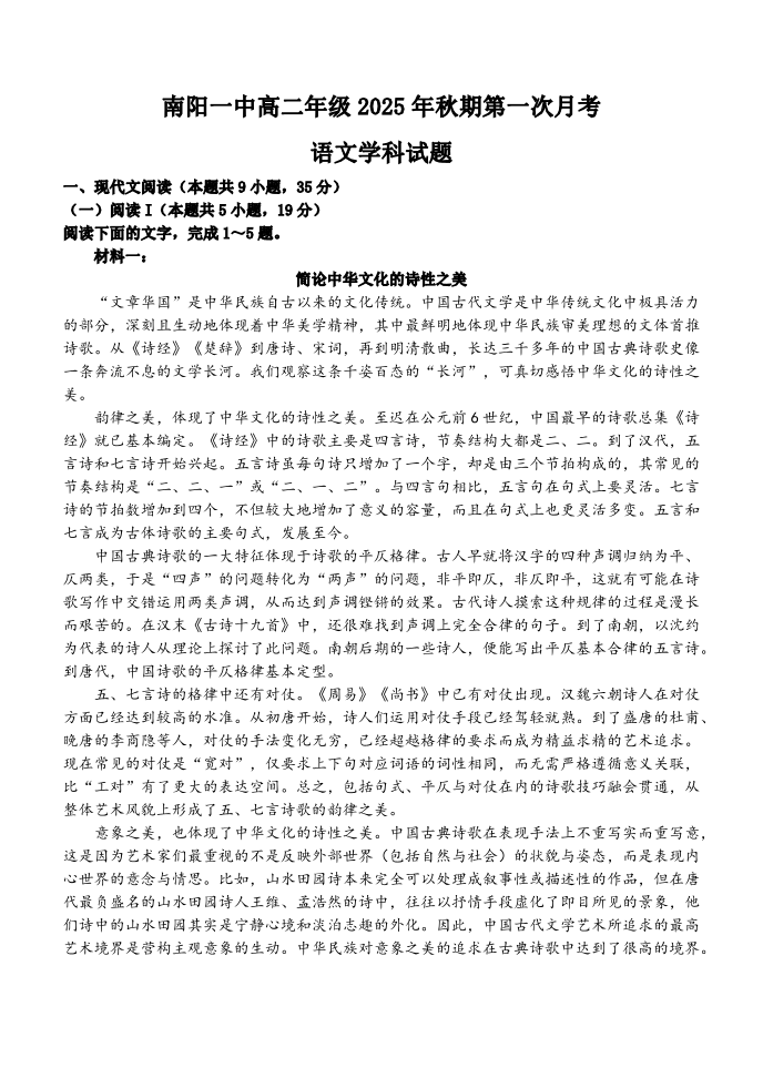 南阳一中高二年级2025年秋期第一次月考 语文.pdf